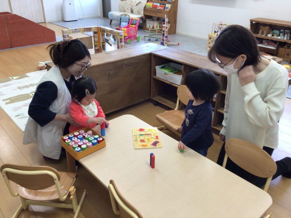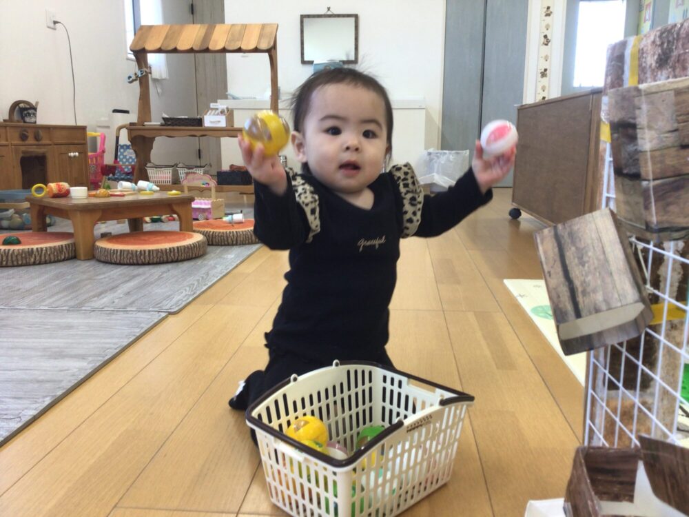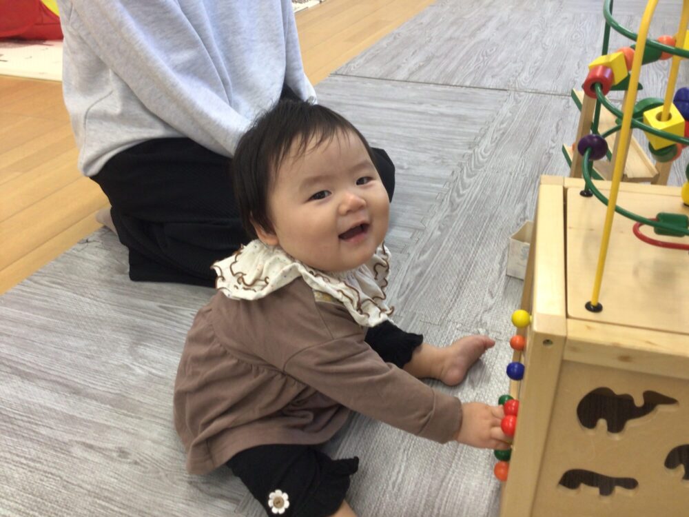 お友達が遊んでいる様子が気になって近くでその姿を見てみたり、お気に入りの玩具を持って音を鳴らしたりして楽しんでいました。