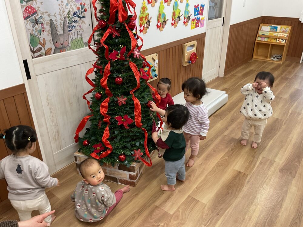 12月に入り、園内もクリスマスの飾りでにぎやかになってきました。小さな手でツリーの飾りに触れたり、音楽に合わせて体を揺らしたりする子どもたちの姿に、日々の成長を感じています。