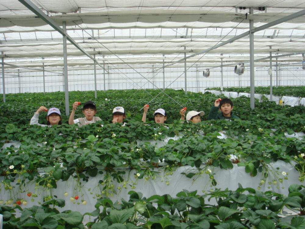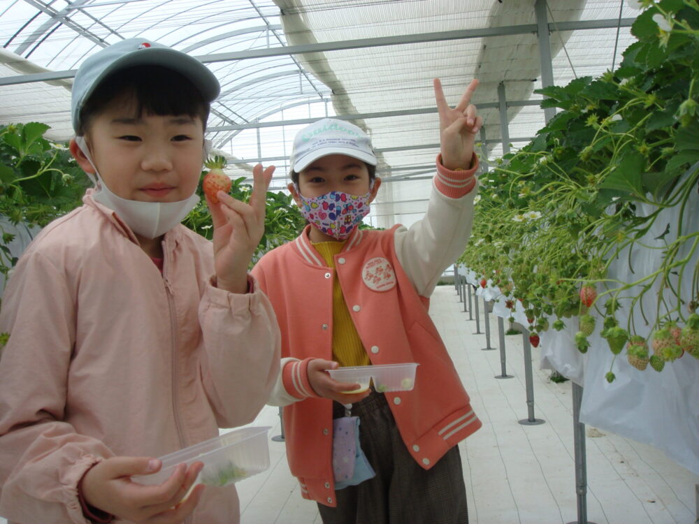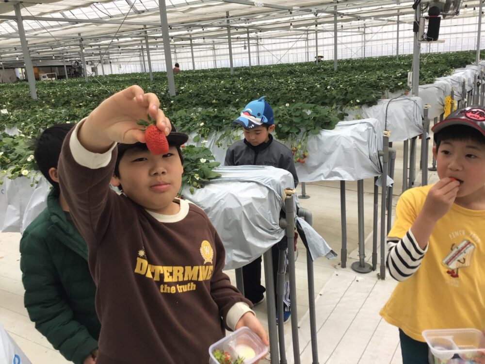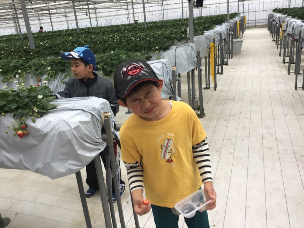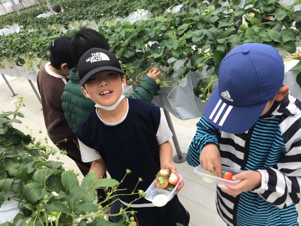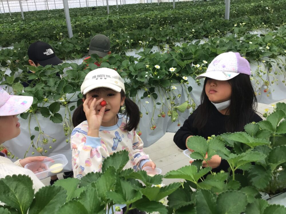 大きないちごや真っ赤ないちごを見つけると、「先生見て!でっかい!」と見せてくれました。また、いろいろな品種があったので食べ比べしながら、「おいCベリーは、甘くて美味しかったよ。」「このいちごはちょっと酸っぱめだった。」など、味の違いを楽しんでいました。