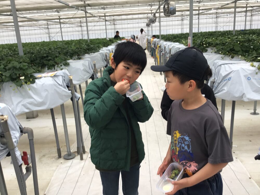 ずっと前からいちご狩りを楽しみにしていた子ども達。「100個以上食べる!」と意気込む姿や、「よつぼし食べたい!」と自分の好きな品種を食べられるか楽しみにしている様子が見られました。