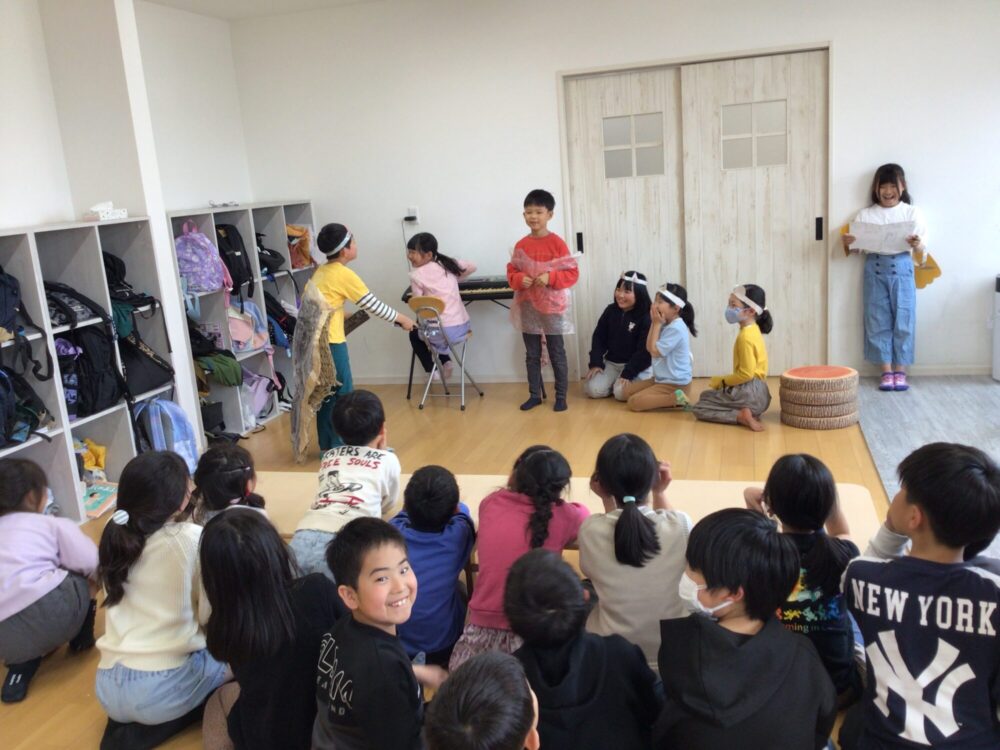 劇の内容も自分達で考え、「二人の兄弟がキノコを集めている間に居眠りをしてしまい、弟が悪役のジャークに連れ去られてしまう。兄は弟を助け出すことが出来るのか!?」という物語でした。